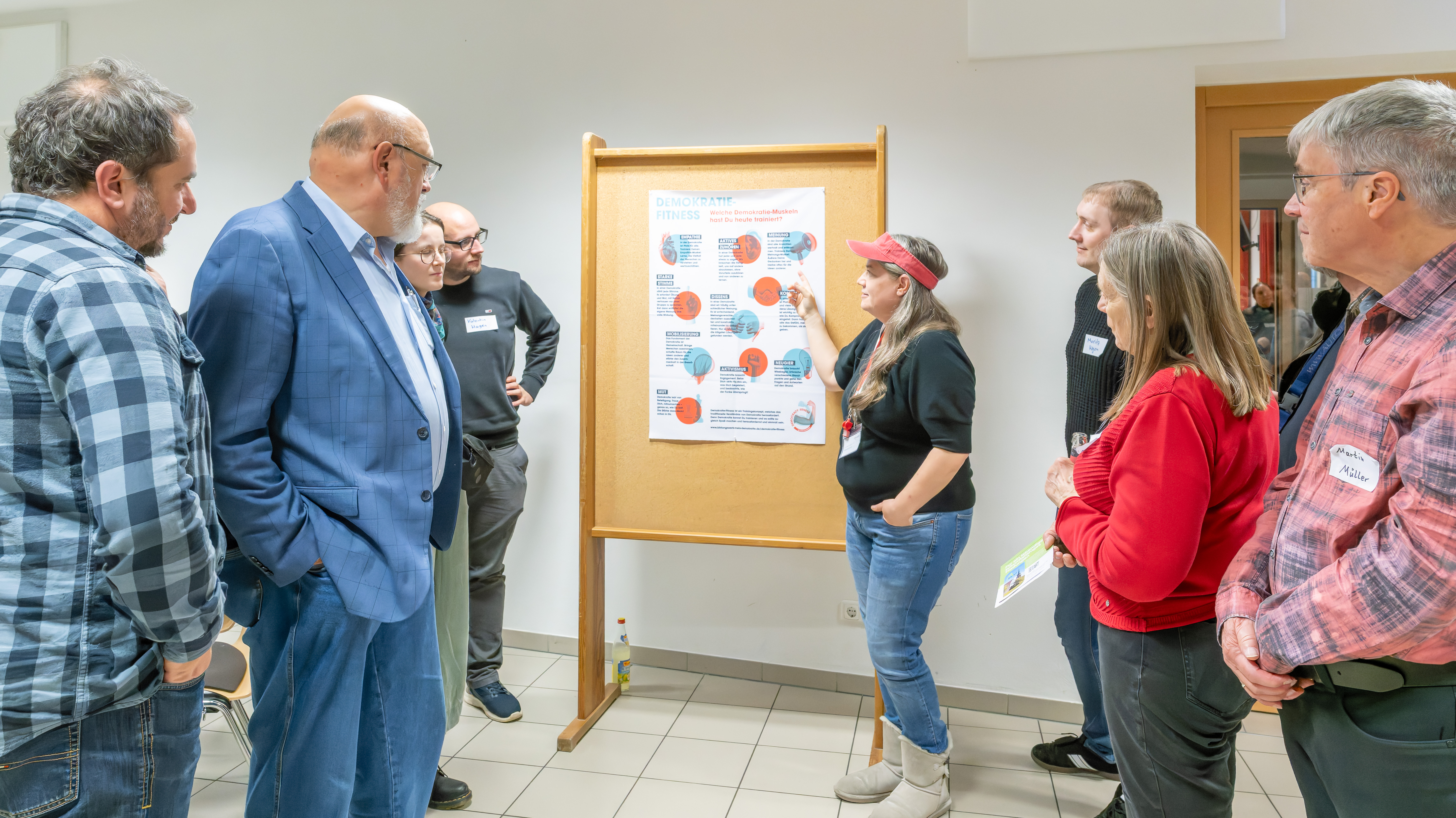 Wie der Name schon sagt, stand bei der Netzwerkparty zum einen der Austausch verschiedenster Akteur:innen, zum anderen aber auch das Feiern der gemeinsamen Errungenschaft im Vordergrund. Nach einer Begrüßung durch die Leitung der Kulturagentur Astrid Hedrich-Scherpf und Amel Kemmerich von der Kultur Bräu e.V. wurden alle Gäste zu einer Runde Demokratiefitness eingeladen. Die Prozessbegleiterin Corinna Walz leitete durch eine Übung zur Stärkung des Motivationsmuskels, bei der Ideen für eine demokratische Gemeinschaft ausgetauscht wurden. Danach wurde das Buffet eröffnet, was als Partizipationsexperiment aus mitgebrachten Speisen der Beteiligten bestand. Später wurde ein kleiner Kurdisch-Tanzkurs angeboten, der die Bude ganz schön in Schwung gebracht hat!